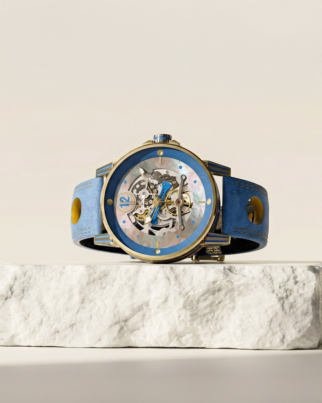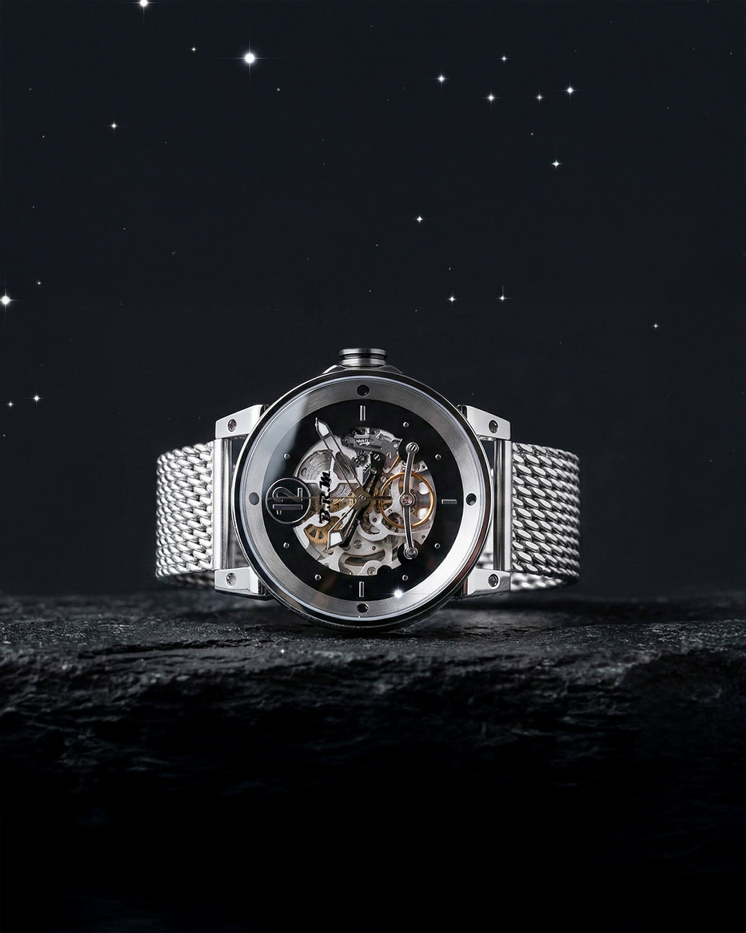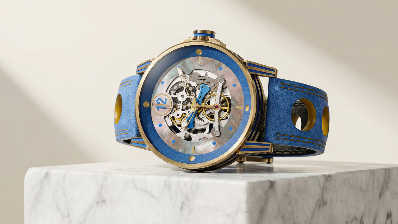 B.R.M Chronographes unveils the V6 Moon Master, a bold new creation. Its automatic movement, entirely hand-skeletonized and crafted in our workshops, reveals every bridge and gear in a striking mechanical display. The visible escapement beats at the heart of a daring architecture, elevating watchmaking in its purest and most authentic form.