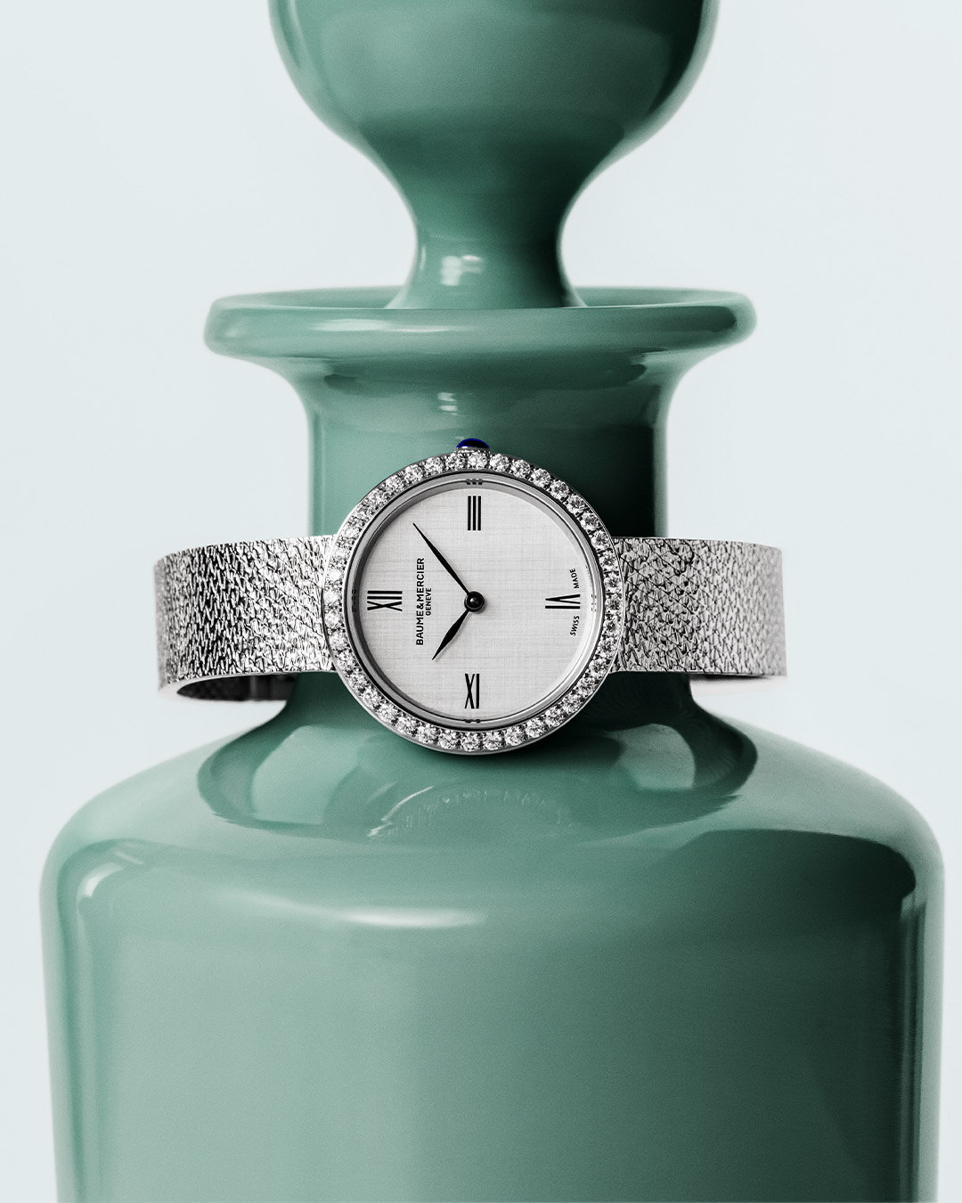 At the heart of the new Joia de Baume & Mercier collection, one piece stands out. Inspired by a historical timepiece created by the Maison in the 1980s and adorned with 40 diamonds, this design comes to life in an elegant, feminine, resolutely contemporary interpretation. The heritage of Baume & Mercier at the heart of a contemporary masterpiece.