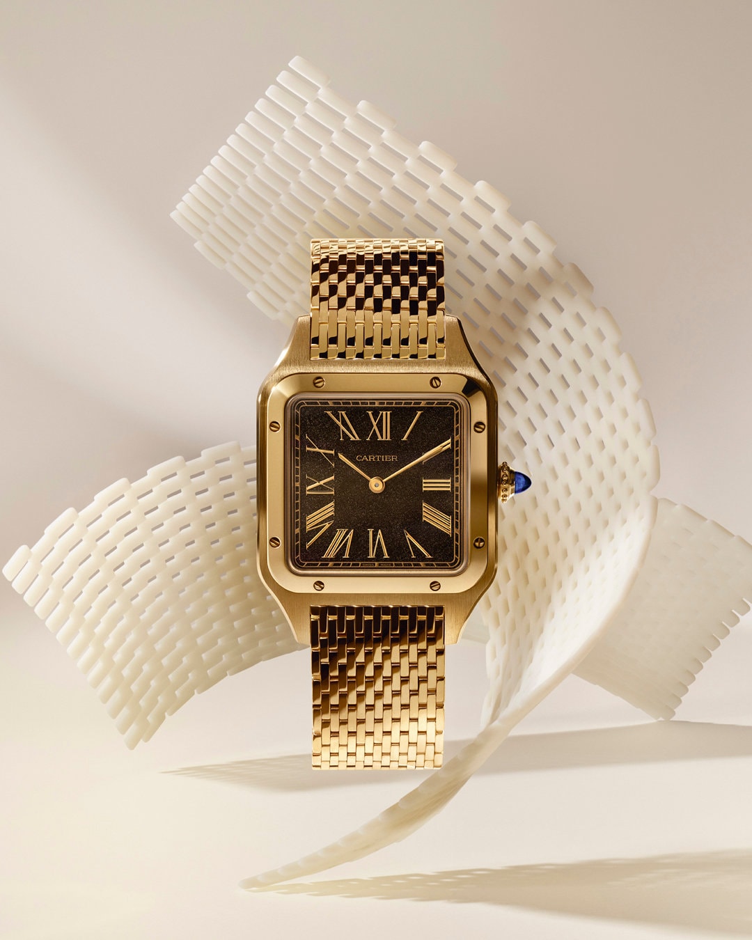 With its flexible metal bracelet, hard stone dial and mechanical manufacture movement, this new version of the Santos-Dumont watch channels the elegance of Alberto Santos-Dumont, who was known for his singular style and attention to detail.
