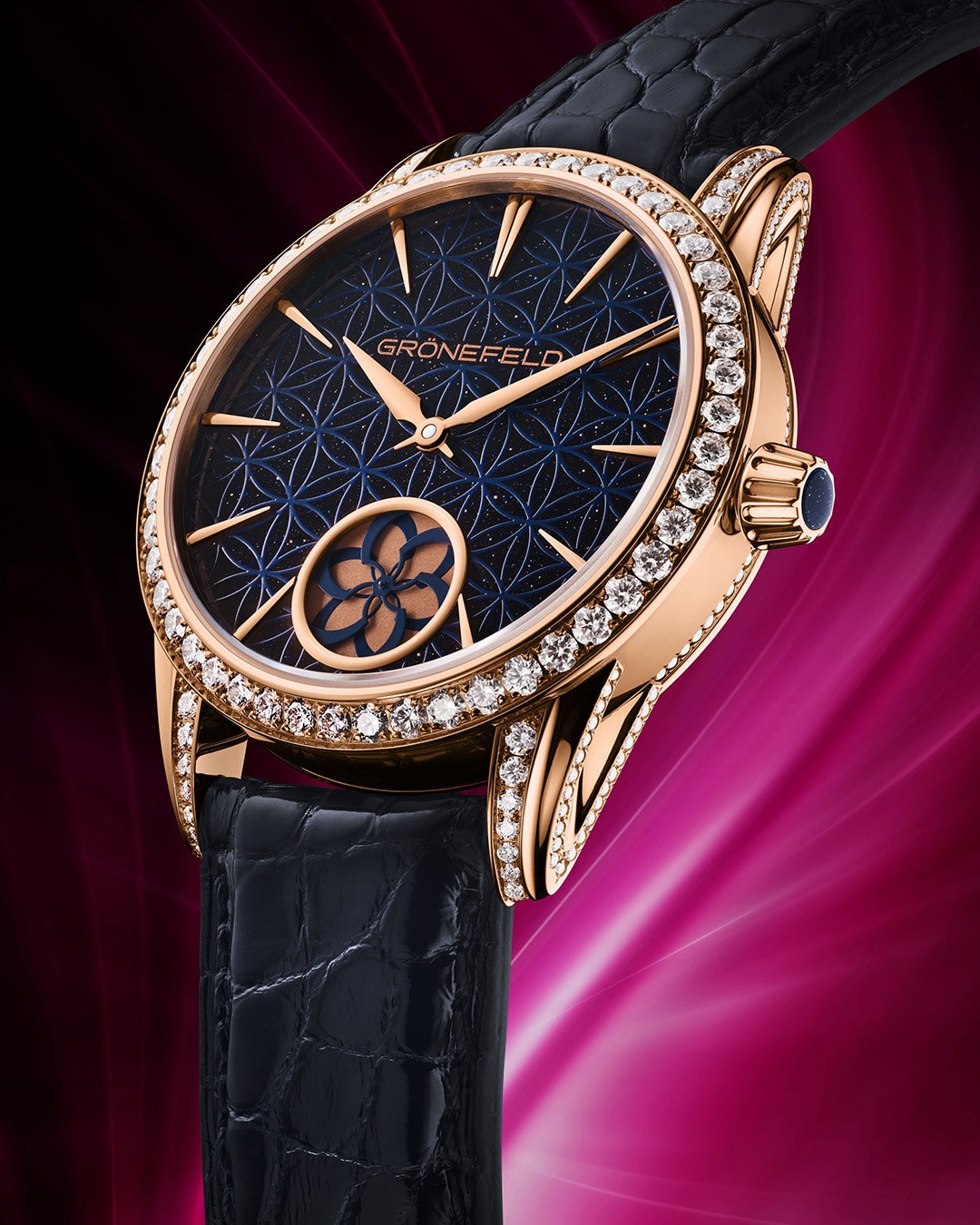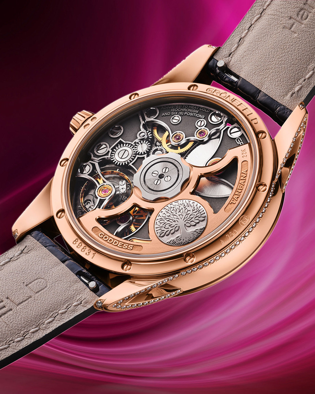 The 1944 Tanfana is the first Grönefeld ladies' model. The Horological Brothers found inspiration in the close surroundings of their hometown of Oldenzaal. This timepiece embraces new design codes and employs some materials not previously seen on a Grönefeld timepiece; however, it still meets the same exacting standards which have attracted praise from legions of watch aficionados over the years.