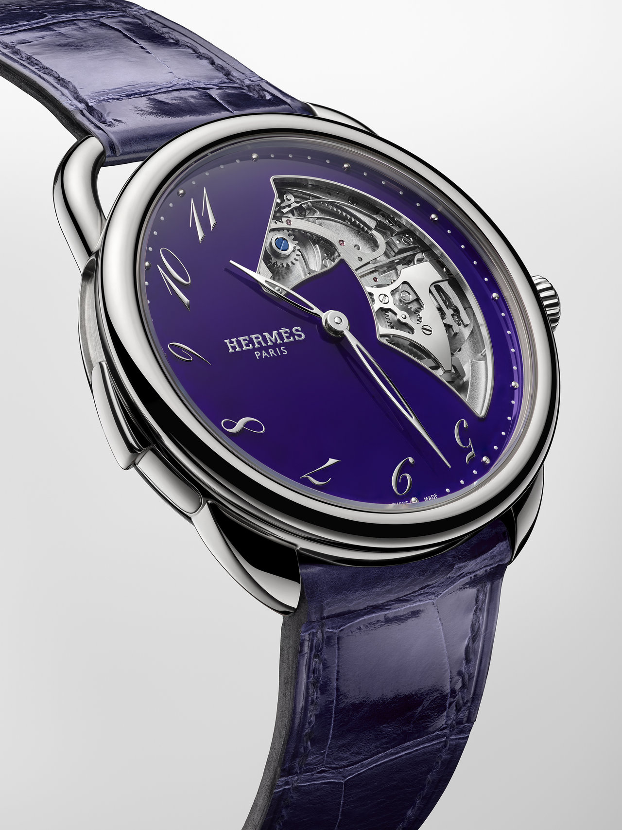 The Hermès H08 watch continues narrating its shape – at once round and square – while housing the new Hermès H1978 S mechanism that reveals the invisible.