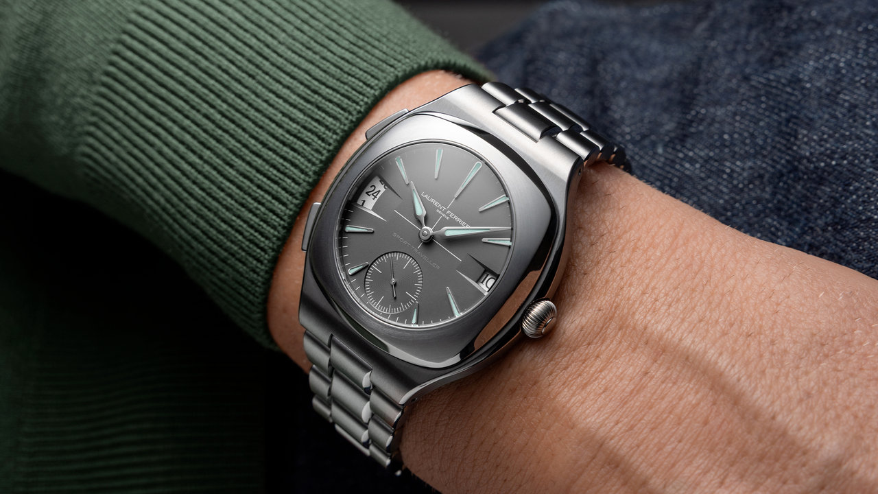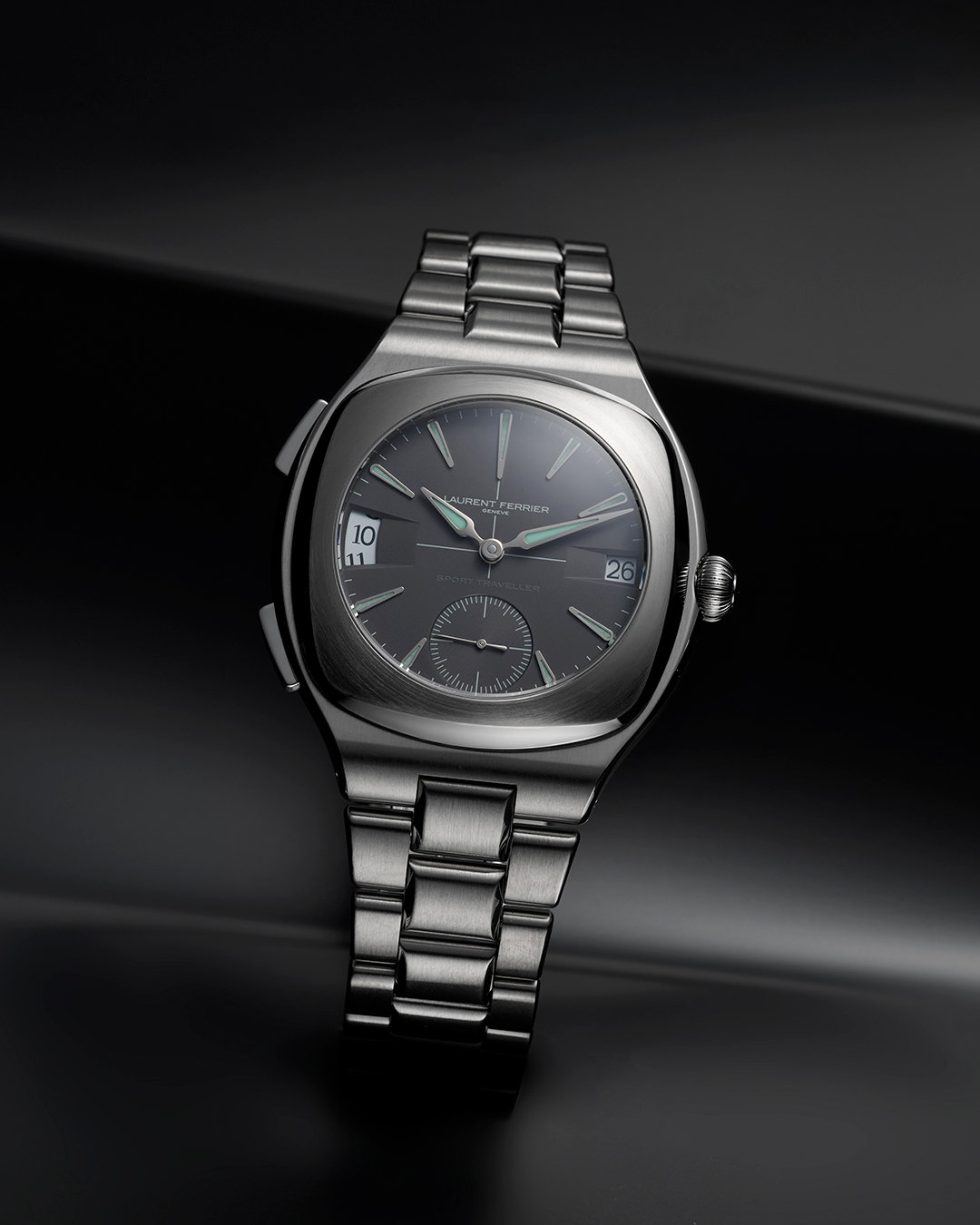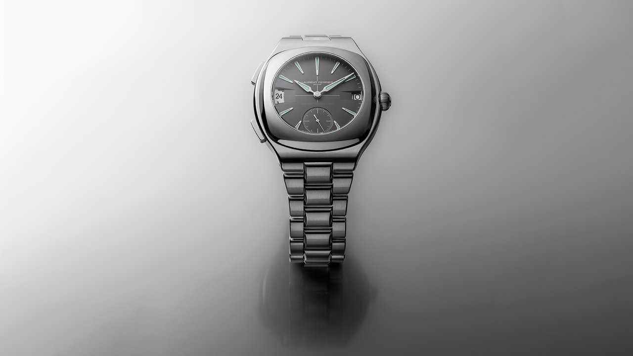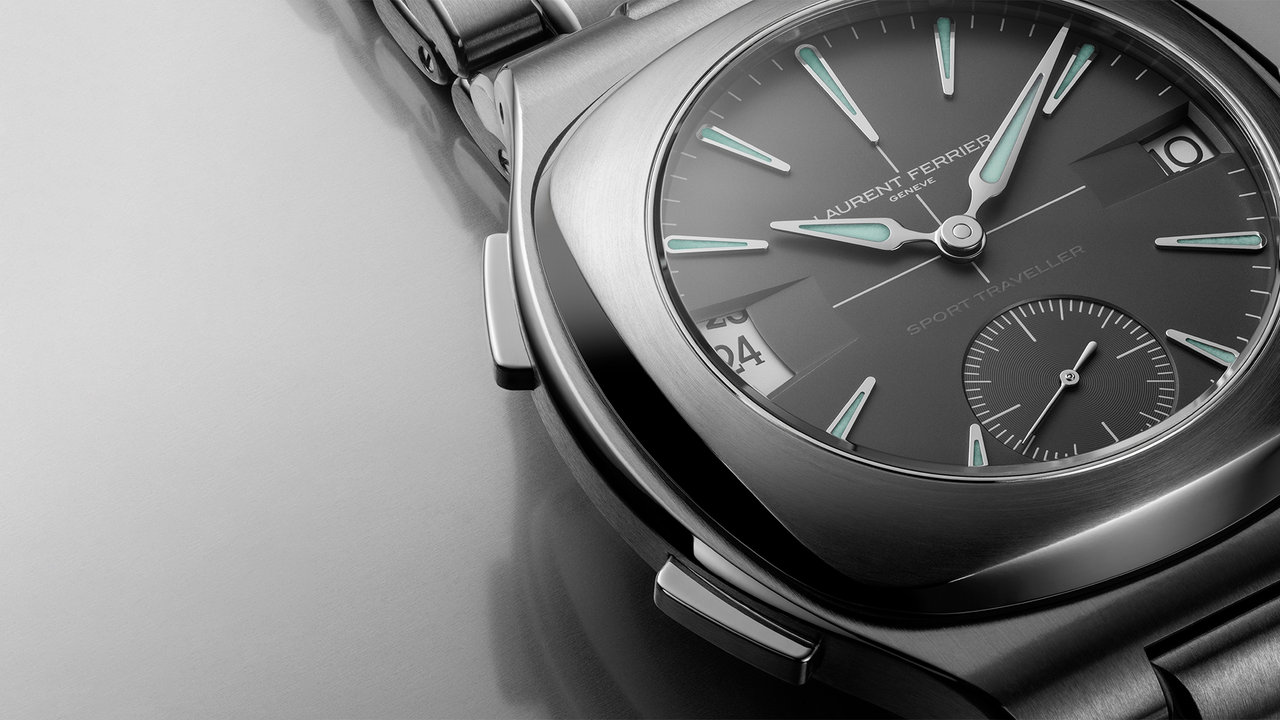 The Sport Traveller Slate Grey redefines GMT travel with instant local time adjustment via push-buttons, while home time remains in constant view. Its integrated titanium bracelet and case reflect the founders’ Le Mans heritage, combining sport-driven design with intuitive functionality for seamless journeys across time zones.
