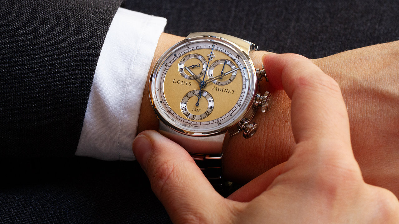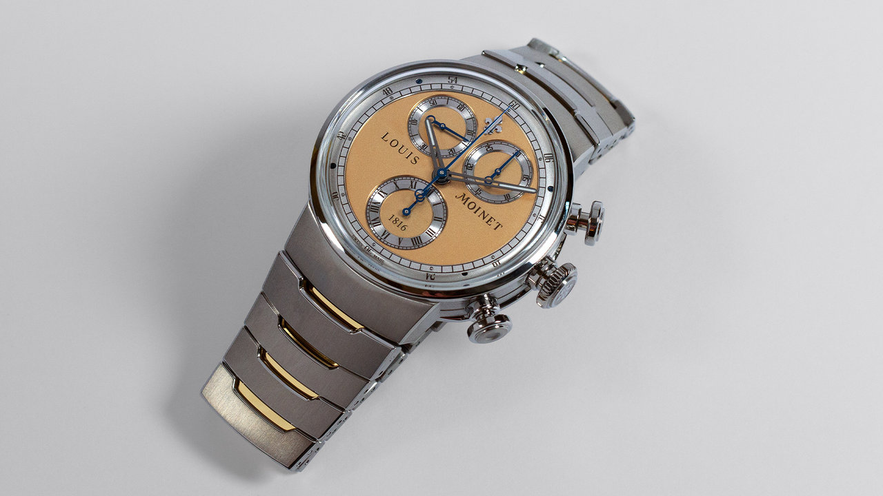 To celebrate the 210th anniversary of this invention, Les Ateliers Louis Moinet unveils a new edition of the 1816 CHRONOGRAPH in a warm champagne colour.