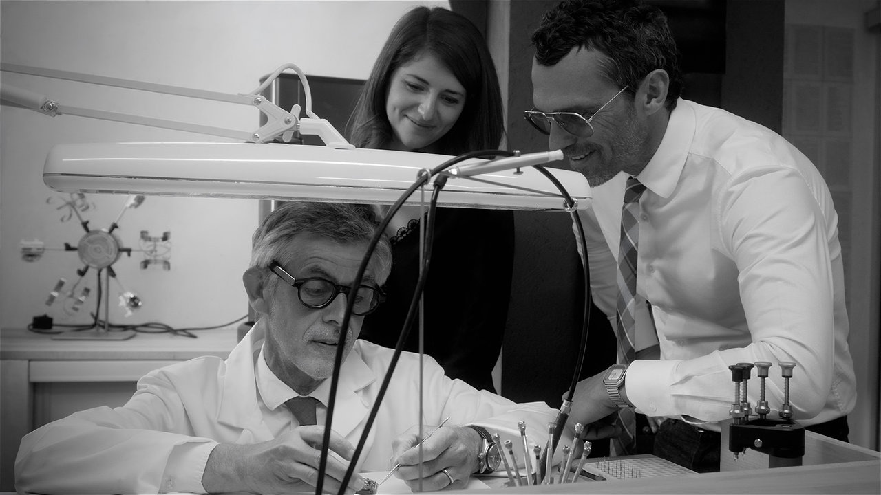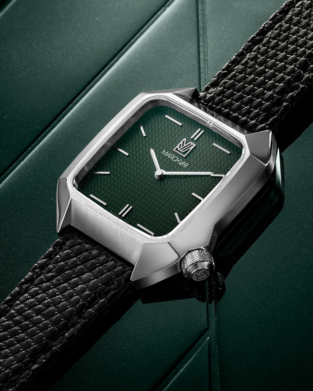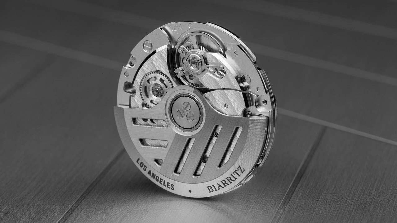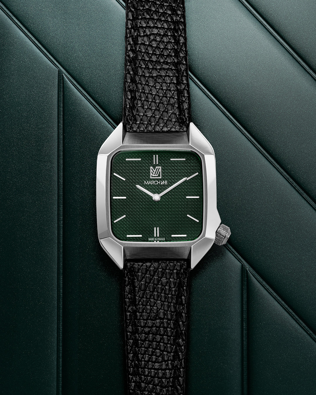 New to the Signature collection, the AM2 XS (“Extra Slim”) lives up to its name. This dress watch version of the AM2, in a 32 mm case only 6.7 mm thick, is powered by the manual-winding D101 movement from La Joux-Perret, offering a 50-hour power reserve. Its houndstooth guilloché dial, slim horizontal markers and “wasp-waist” strap give it a delightfully vintage elegance. Chic and cool at once.