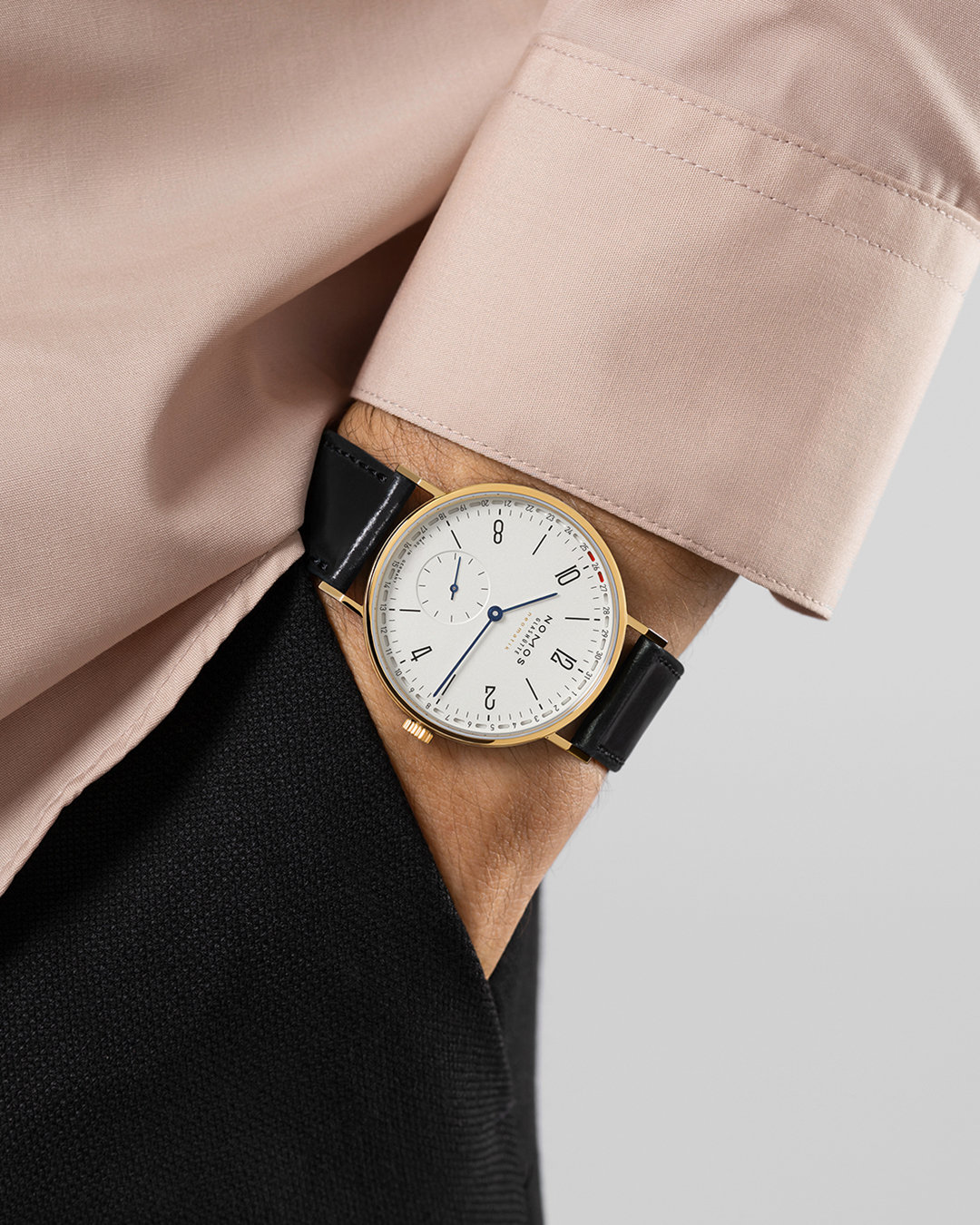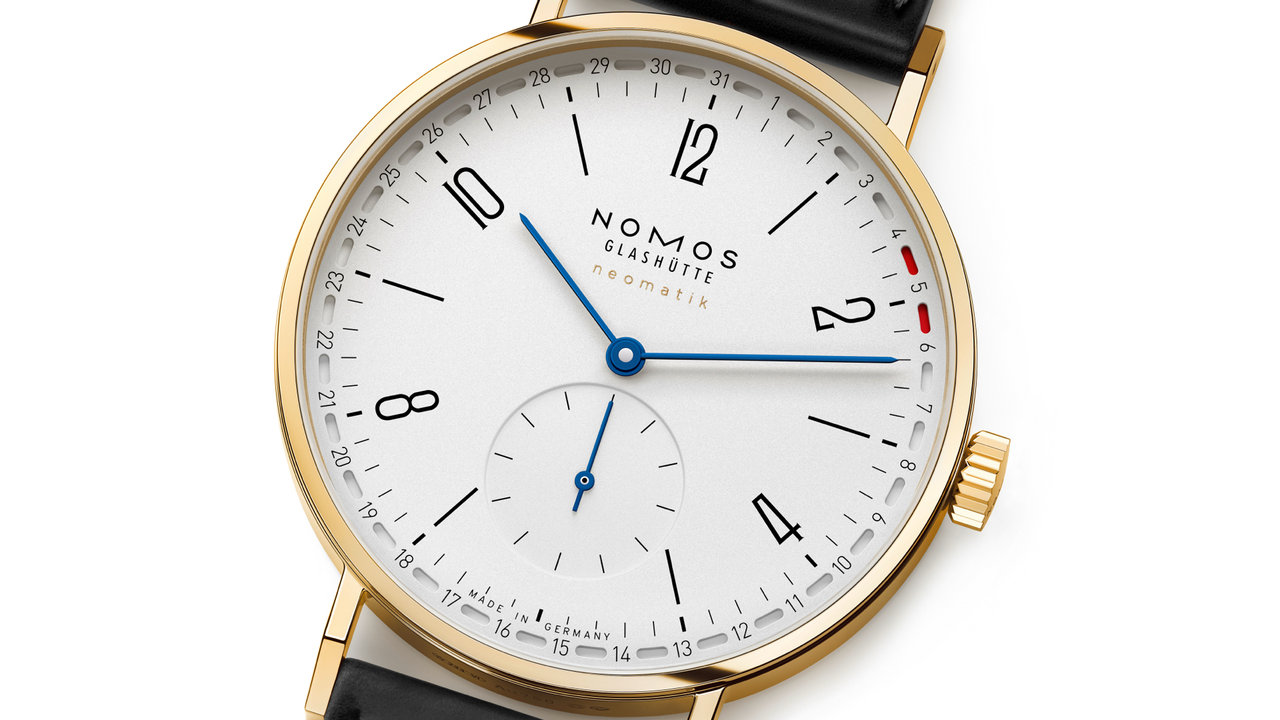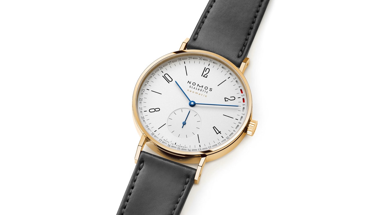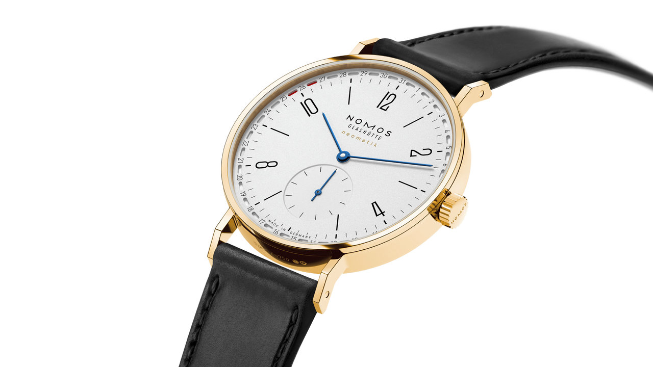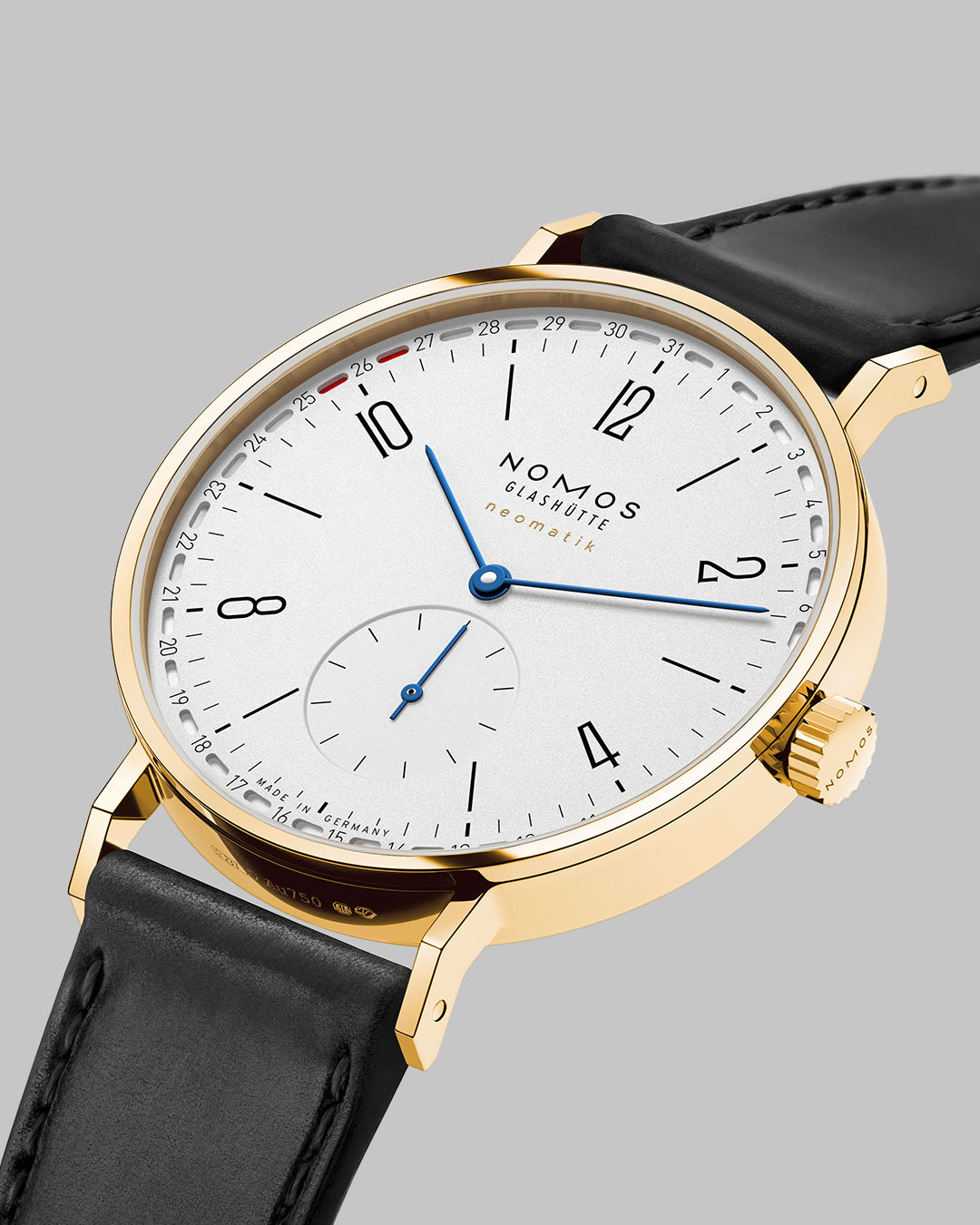 Tradition, updated: With Tangente gold neomatik 38 Update, NOMOS’ patented ring date is available in a gold timepiece for the first time. Inside, the ultra-thin automatic caliber DUW 6101 is at work – uniting modern watchmaking innovation with the timeless appeal of gold. Made to last, crafted from precious materials, with a protected designation of origin: Glashütte, Germany.