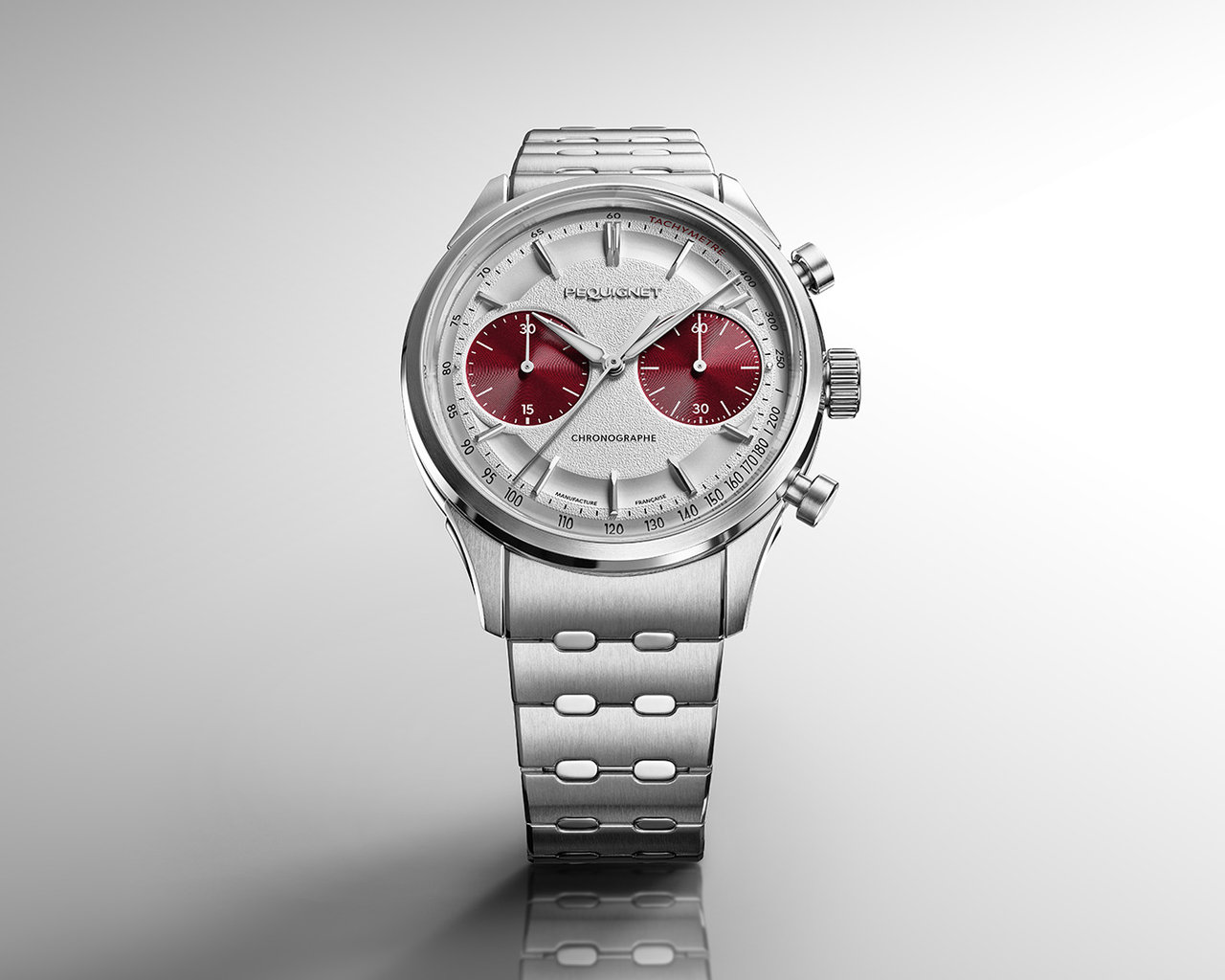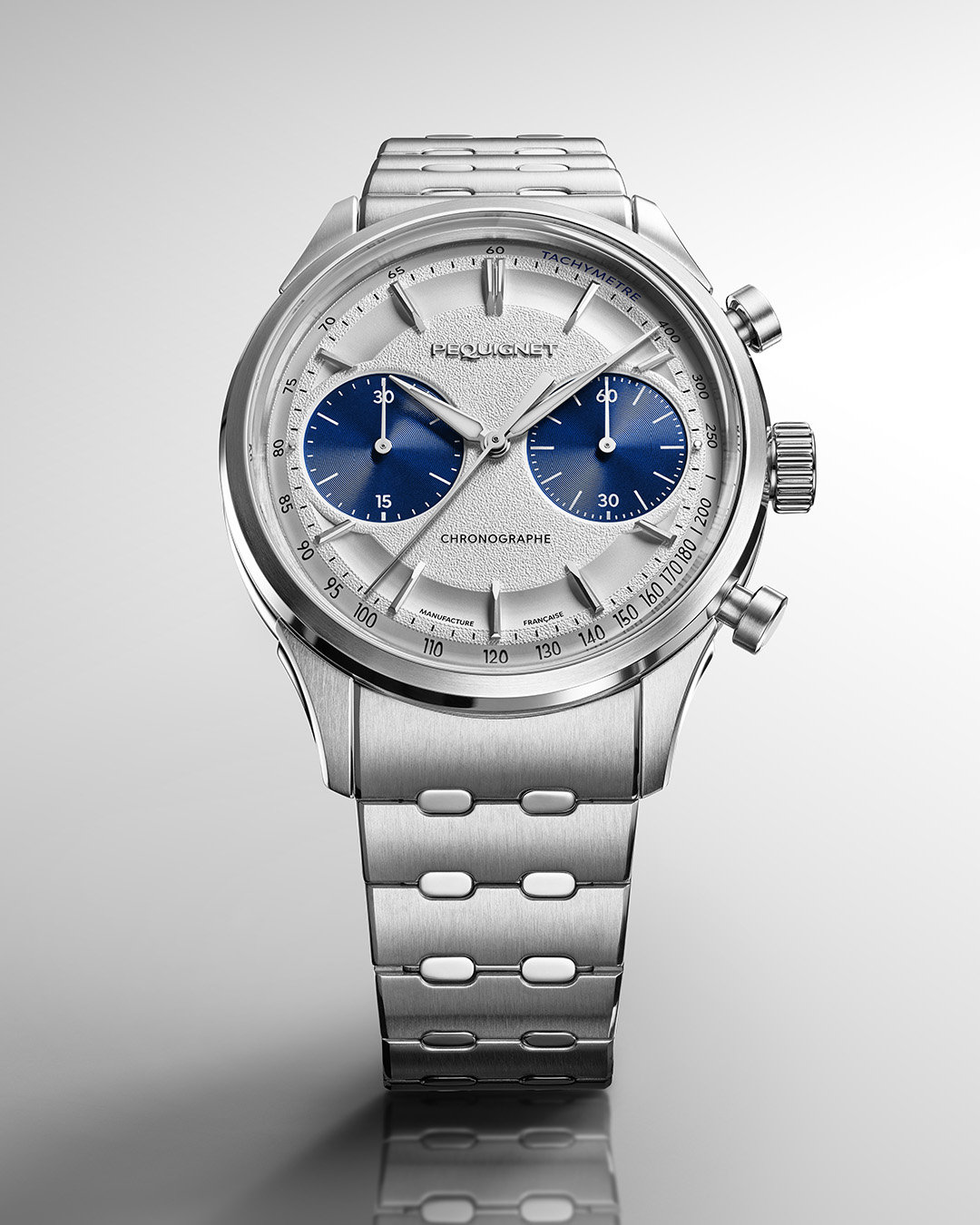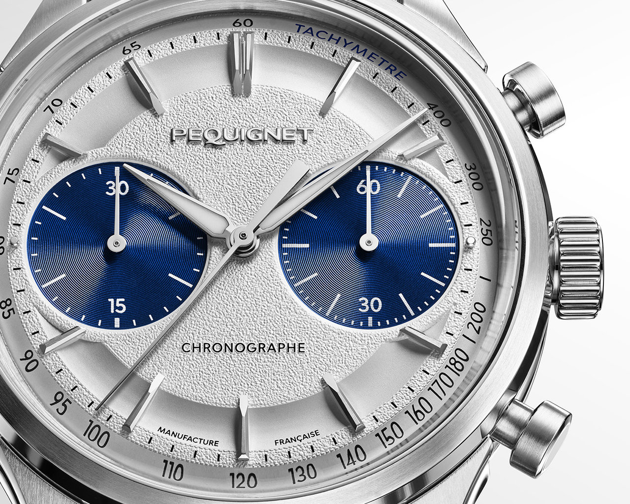 PEQUIGNET Manufacture unveils the Royale Paris Chrono, its first manufacture chronograph featuring the Calibre Initial® Chronograph. This fifth proprietary movement, adjusted in six positions, combines performance and elegance with a thickness of only 12.7 mm. The 39.5 mm model retains the case with attached lugs, a signature feature of the Royale Paris collection.